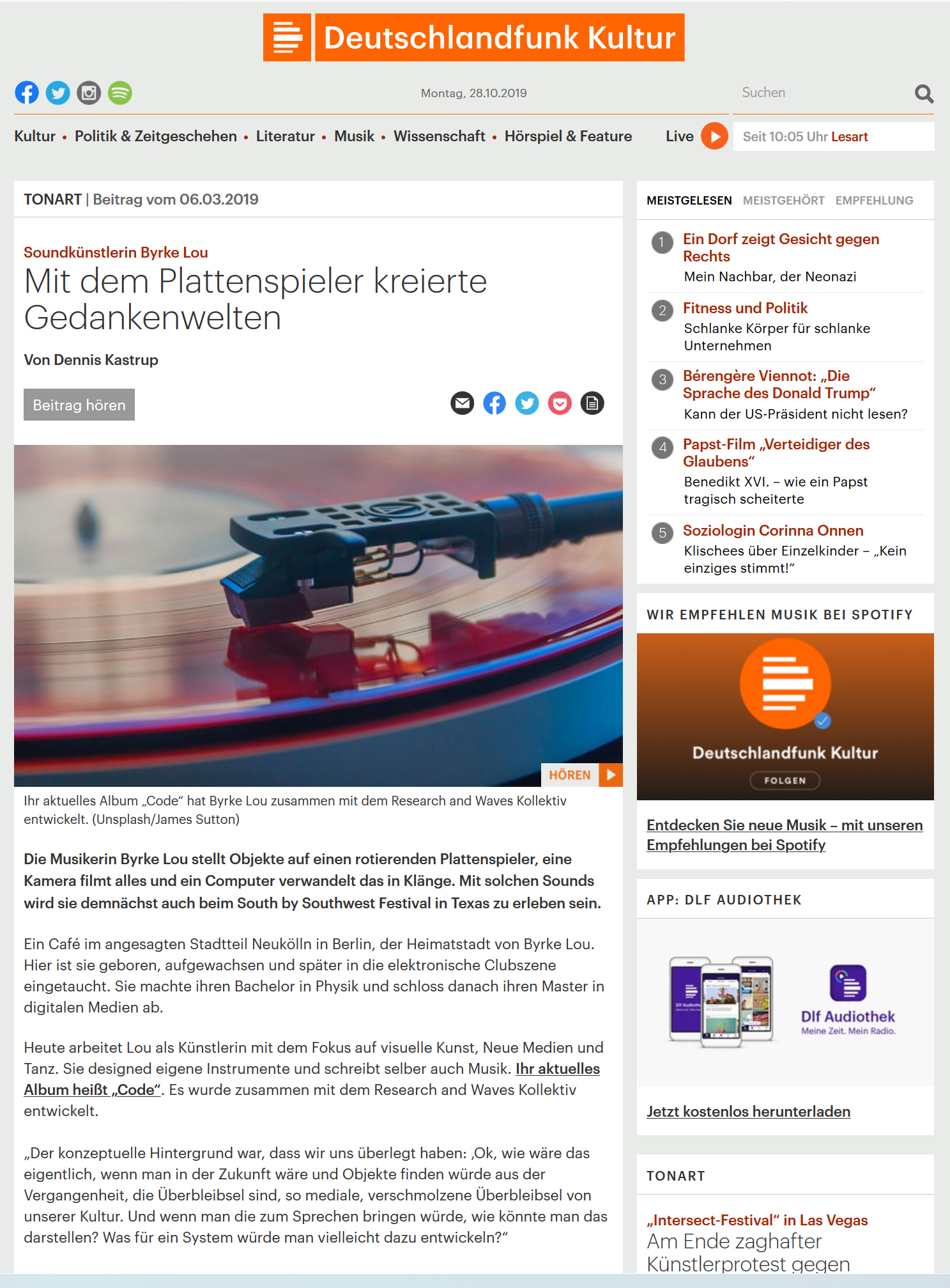 Deutschlandfunk Kultur (German), March, 6th 2019